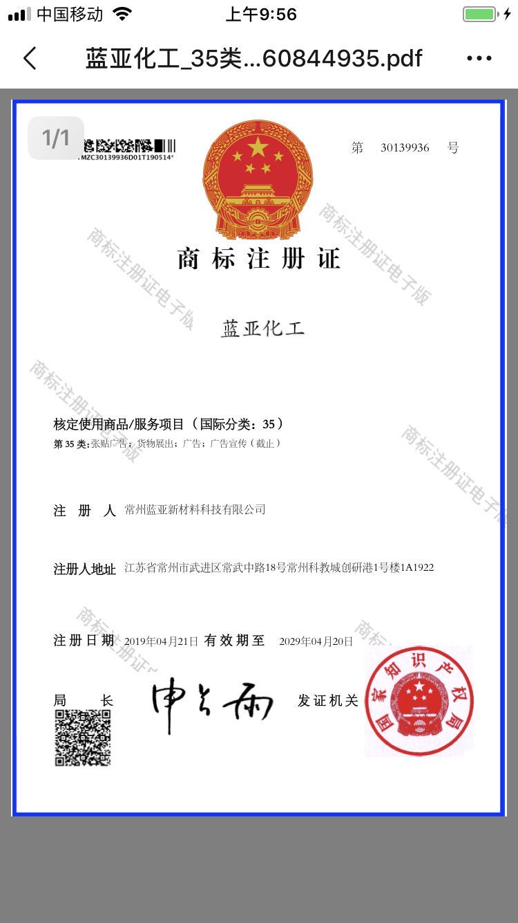 常州藍(lán)亞新材料科技有限公司是一家集技術(shù)研發(fā)、技術(shù)服務(wù)、生產(chǎn)加工、經(jīng)銷(xiāo)批發(fā)為一體的化工經(jīng)營(yíng)企業(yè)